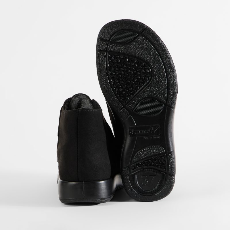 Zdravotná zimná obuv Varomed Innsbruck je priestranná zimná obuv pre ženy aj mužov, ktorí potrebujú kvalitnú obuv väčšej šírky do snehu a mokrého počasia. Obuv má extra šírku L, čo zaručuje dostatok priestoru pre opuchnuté a zabandážované nohy. Obuv je vyrobená z mikrovelúru s vode odolnou membránou Wiltex, korý je veľmi príjemný, tvarovo stály a ide ľahko čistiť. Vnútorná podšívka a stielka je z pravej strihanej vlny. Mäkkú vyberateľnú vložku môžete zameniť podľa potreby. Zapínanie je na dva suché zipsy. Obuv má pevný opätok pre optimálnu polohu päty. Podrážka je z ekologického materiálu PU, je veľmi ľahká a pevná. Má protišmykovú podrážku. Obuv sa nesmie prať len čistiť.