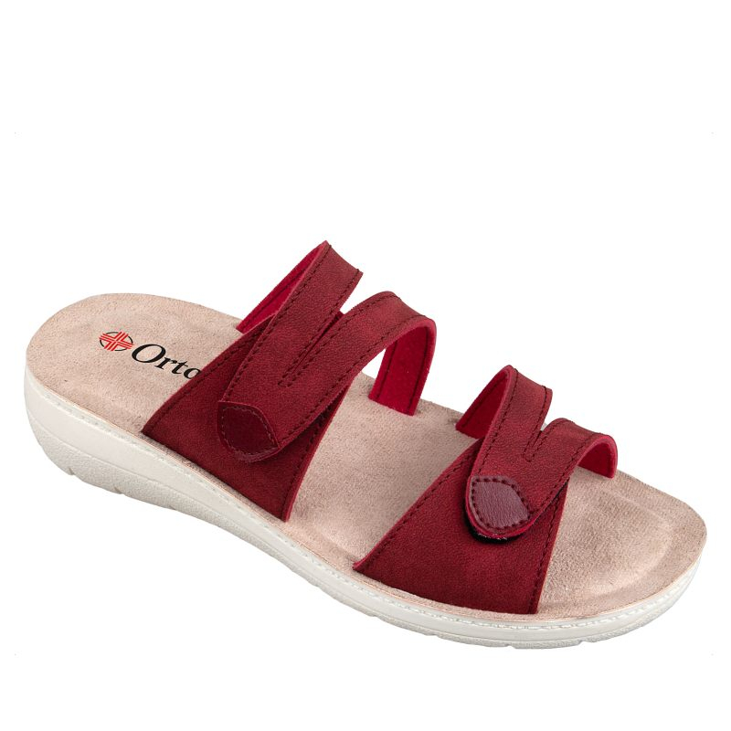 Zdravotná vychádzková obuv pre pohodlnú chôdzu. Zvršok je z eko kože v bordovej farbe. Zapínanie je na dva suché zipsy, čo umožňuje ľahké prispôsobenie sa k nohe. Mäkká anatomická stielka zabezpečuje komfort pri chôdzi. Stabilná a komfortná biela podrážka z PU materiálu, priamo vstrekovaná odľahčí a odpruží každý krok. Rovnomerne rozdeľuje zaťaženie, tlmí nárazy a nerovnosti povrchu pri chôdzi. Je to ekologický materiál, veľmi ľahký, pevný, zabezpečuje dobrú stabilitu a dlhú životnosť. Výška podpätku je 4 cm.