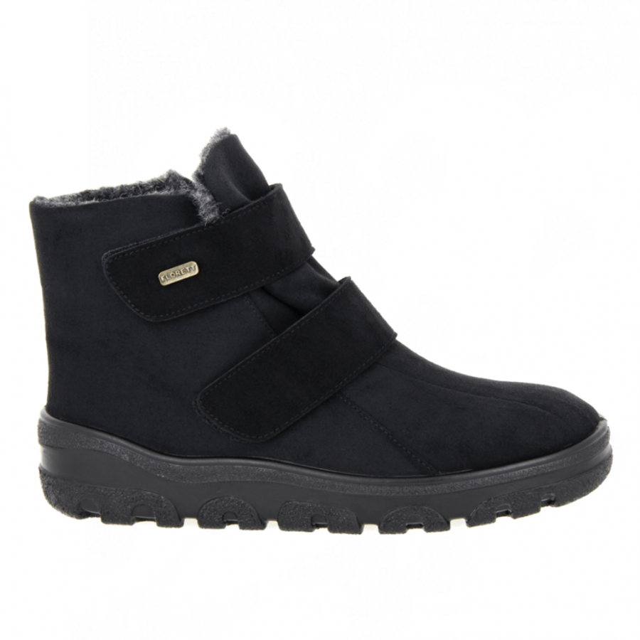 Pánska zimná obuv v šírke H je vybavená vložkou z materiálu Puratex- vode odolná, vetru vzdorná a priedušná. Vonkajší materiál je semiš v nepremokavej úprave, zapínanie je na dva suché zipsy. Vnútornú podšívku tvorí čistá strihaná vlna. Obuv má protišmykovú podrážku.