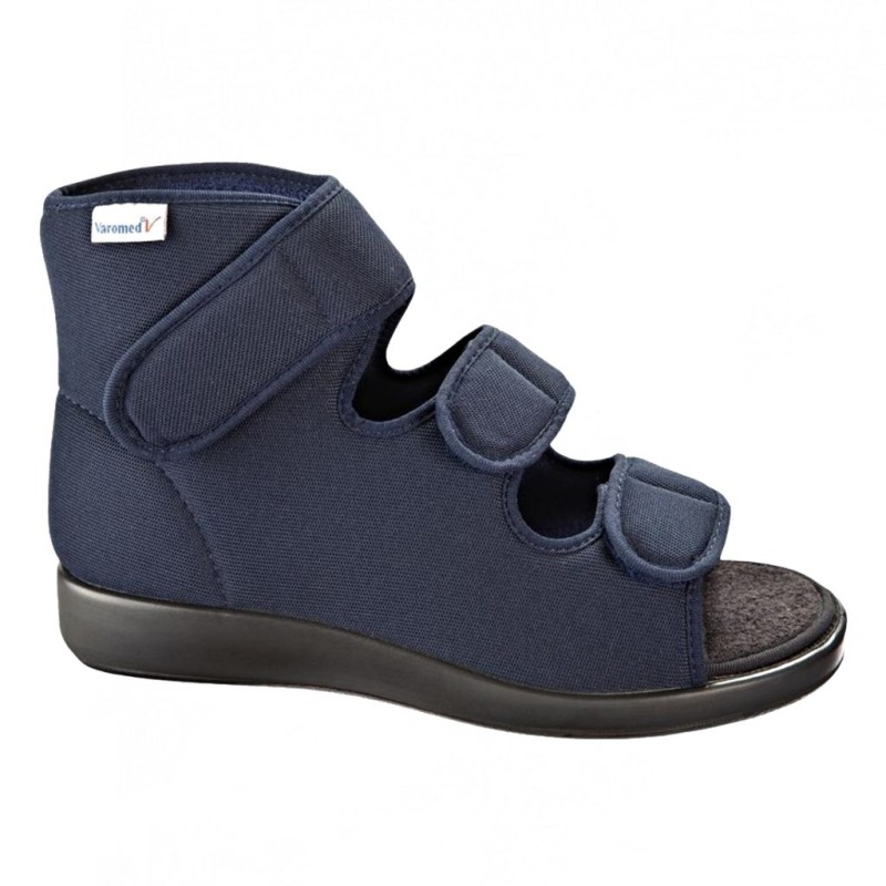 Zdravotná obuv Varomed Rijeka je kvalitná terapeutická topánka pre ženy alebo mužov, ktorí hľadajú obuv väčšej šírky. Topánka má extrémnu šírku R, čo zaručuje dostatok priestoru pre boľavé opuchnuté a zabandážované nohy. Vrchný materiál je Piqué. Je to ľahká tkanina, príjemná pri kontakte s pokožkou a má mimoriadnu absorpčnú schopnosť. Topánka má antibakteriálnu froté podšívku s iónmi striebra, ktoré zabraňujú vzniku plesní a rastu hub. Obuv má 6mm výmennú vložku z mäkkej peny, ktorá je potiahnutá s froté. Zapínanie je na tri suché zipsy, čo umožňuje obuv kompletne otvoriť. Zadný opátok slúži k správnemu usadeniu päty. Podrážka je z ekologického materiálu PU, je veľmi ľahká a pevná. Je vhodná aj na vonkajšie použitie. Obuv je možné prať do 30°C.